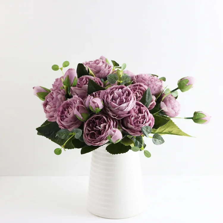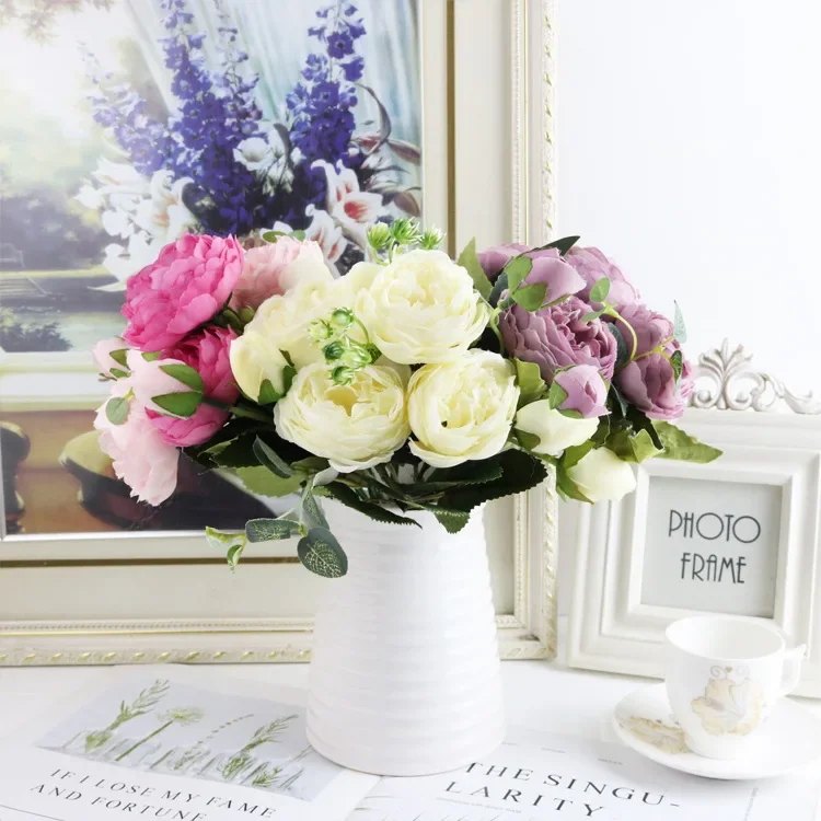 1 Bundle Artificial Roses Flowers Silk Peony Bouquet Home Decoration Accessorie Wedding Party Scrapbook Fake Plants Diy Pompons