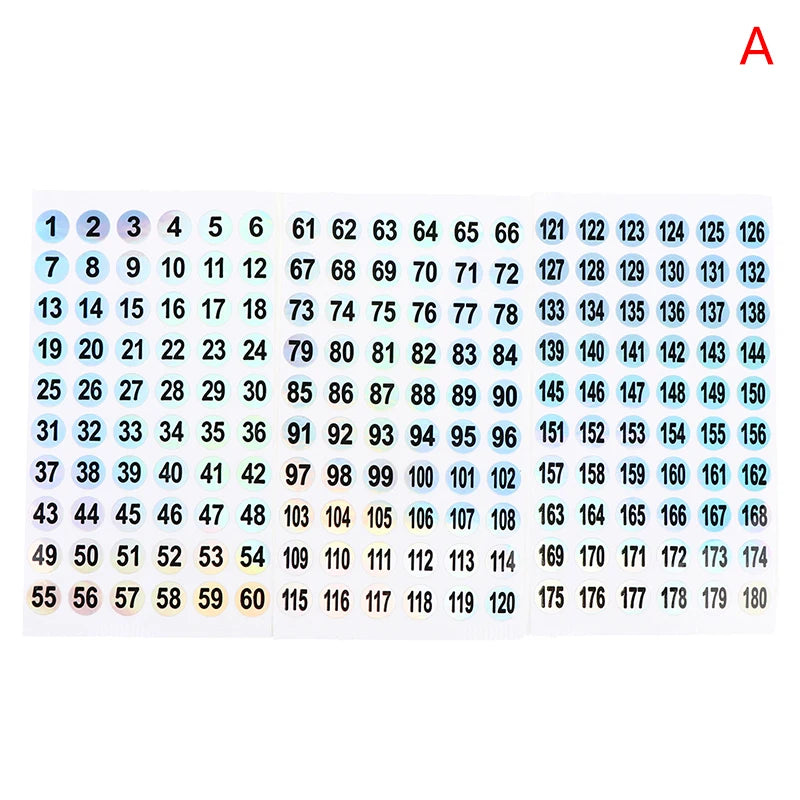 3 Sheets Number Sticker Set (1–180) – Holographic Nail Polish Labels