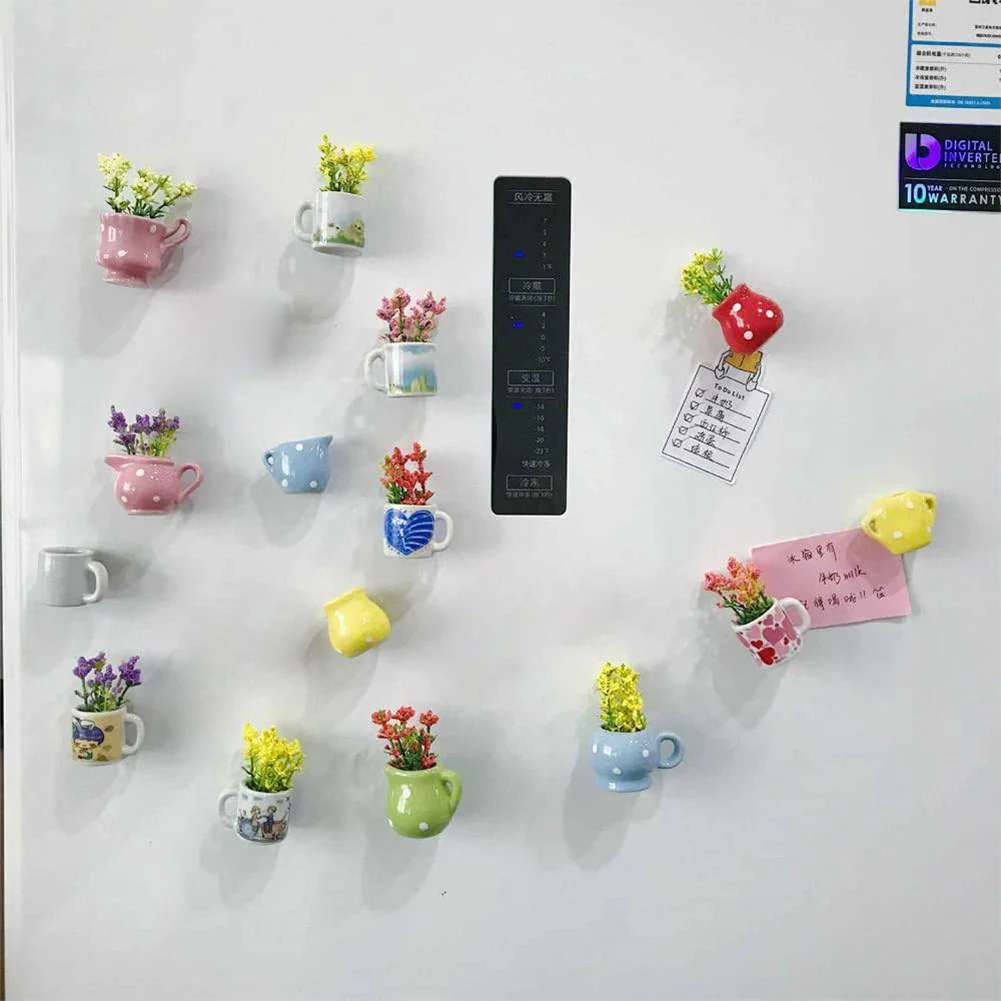 8pcs Mini Ceramic Vase Fridge Magnets Flower Vase Refrigerator Magnets Decorative Refrigerator Stickers for Home Kitchen Office School Locker Whiteboard