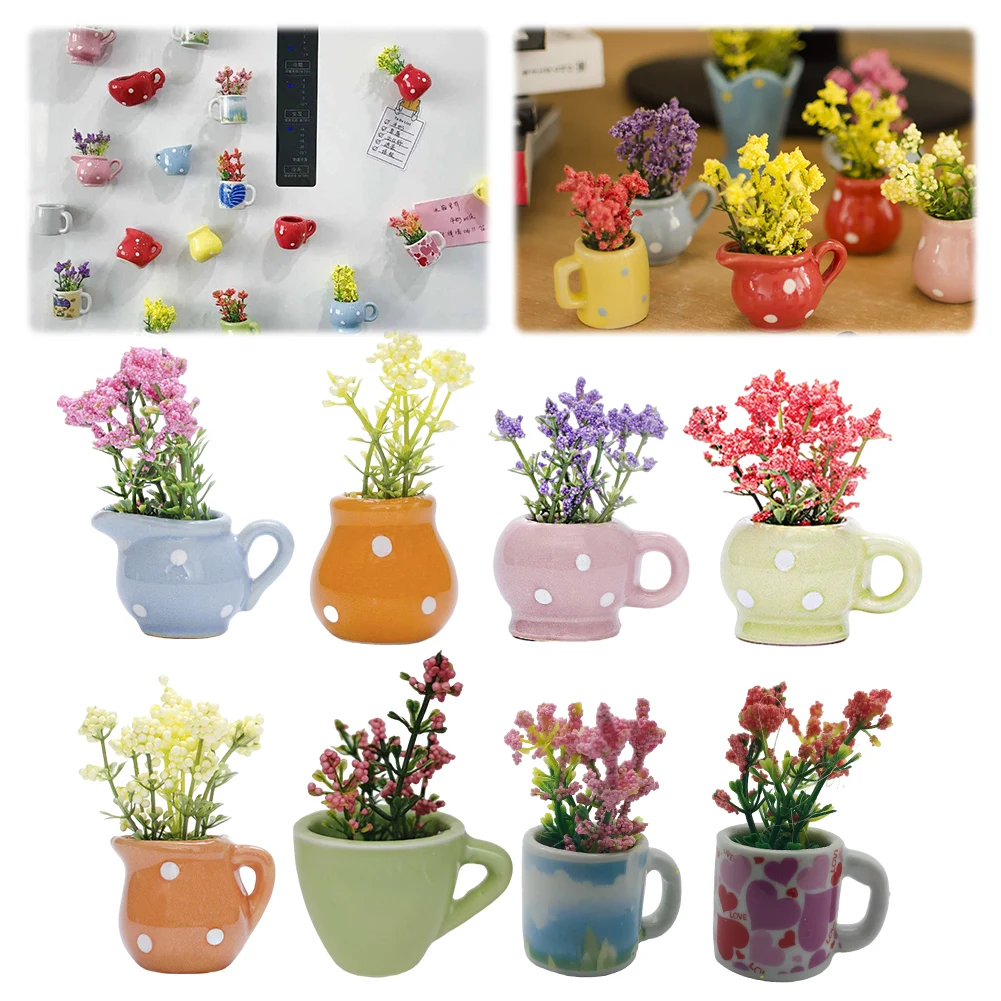 8pcs Mini Ceramic Vase Fridge Magnets Flower Vase Refrigerator Magnets for Home Kitchen Office School Locker Whiteboard