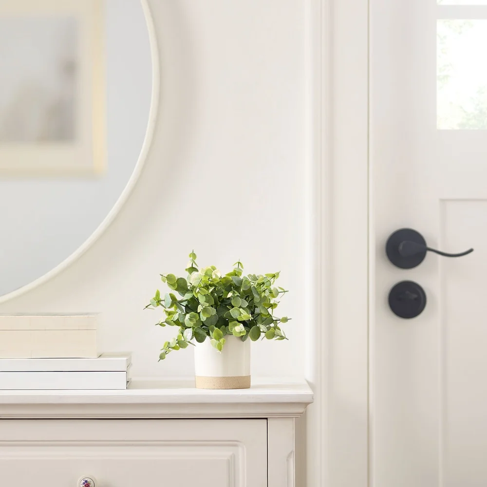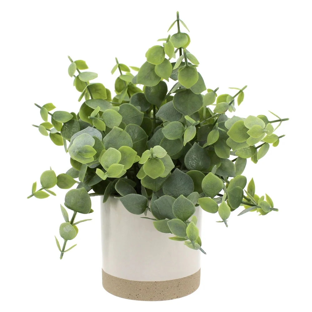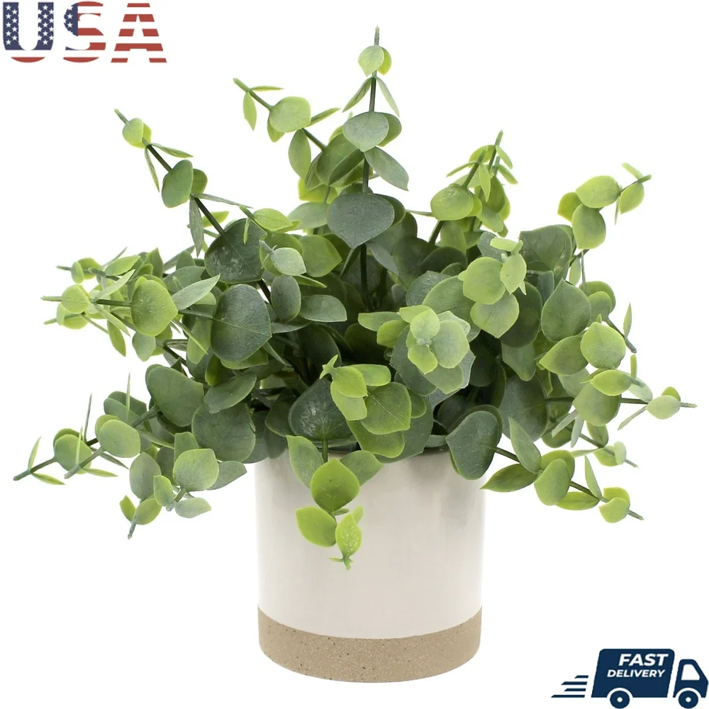 Artificial Eucalyptus Plant in Two-Tone Ceramic Planter 8 Inch Indoor Decorative Houseplant Lush Green Leaves Gift Idea Home