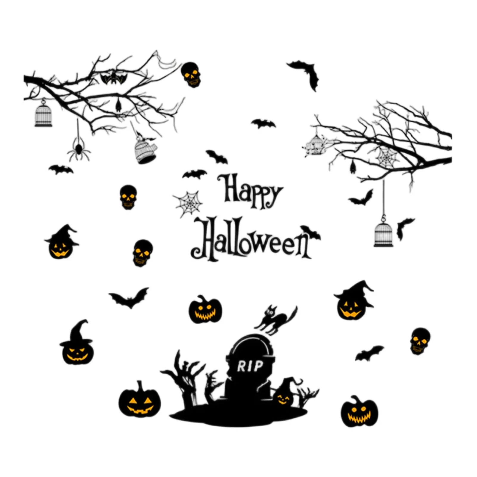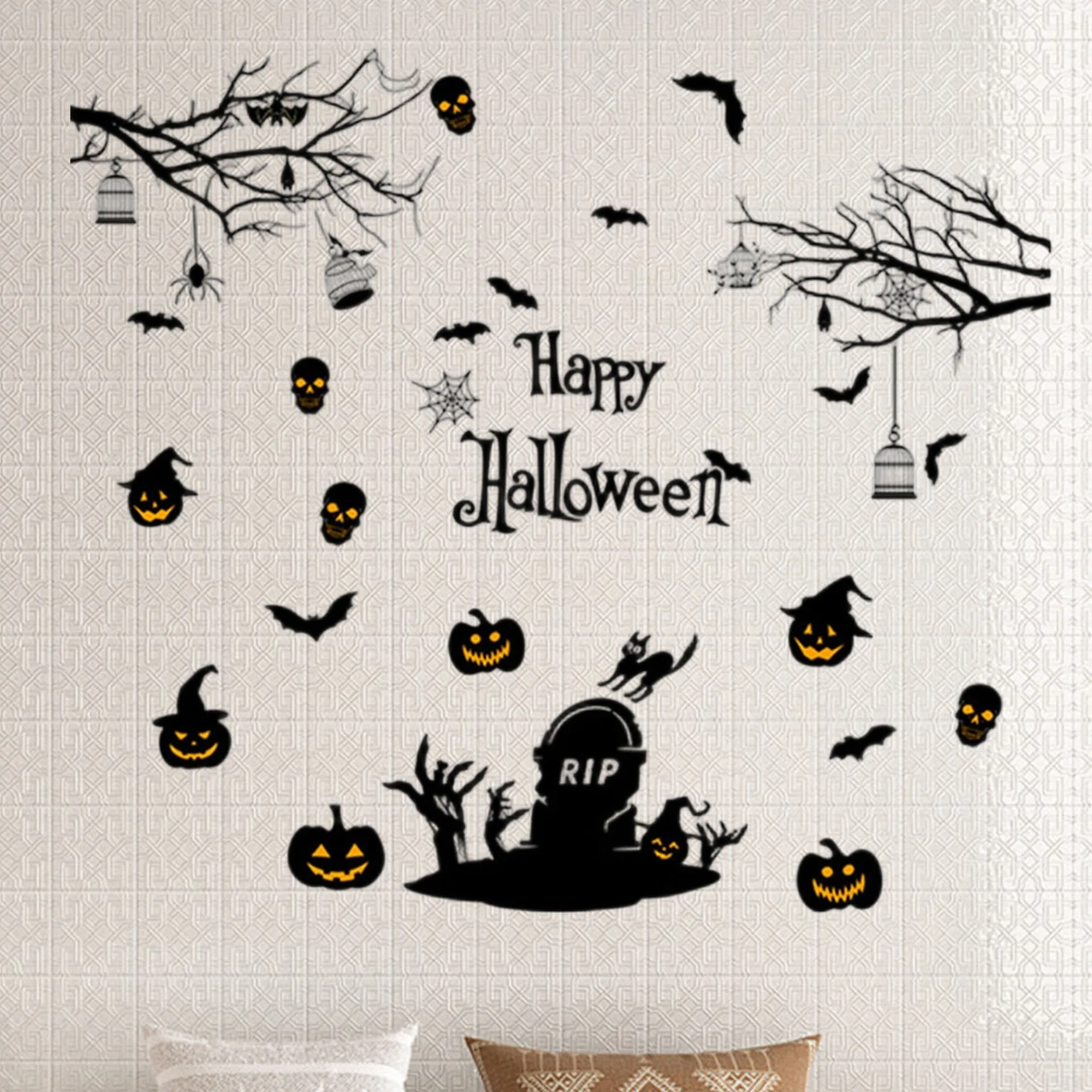 Halloween Haunted House Wall Decal Spooky Ghosts and Pumpkins Wall Art Home Decorations for Halloween Party