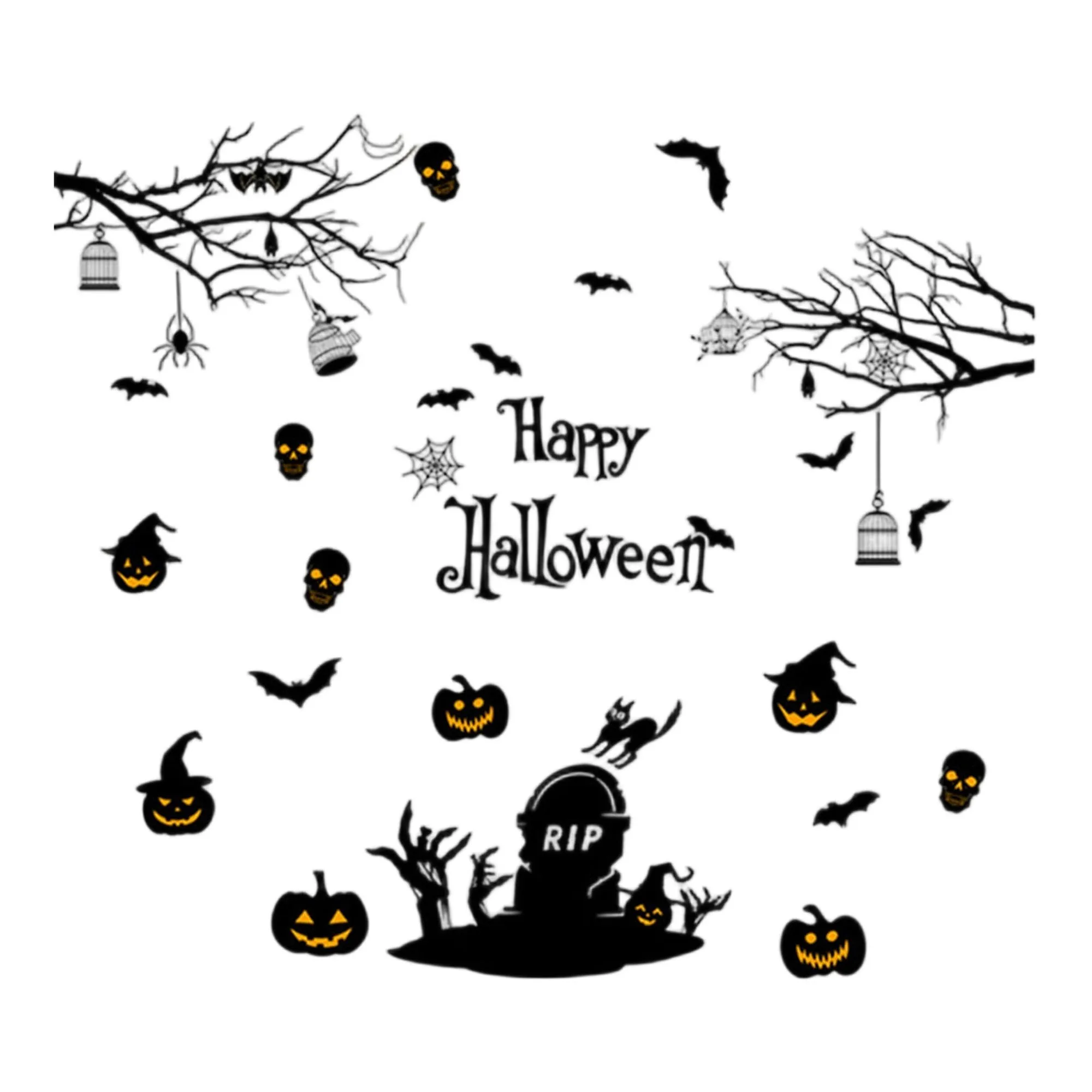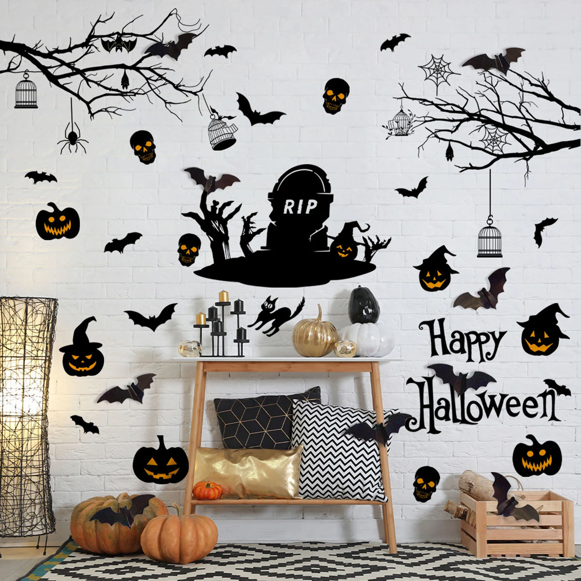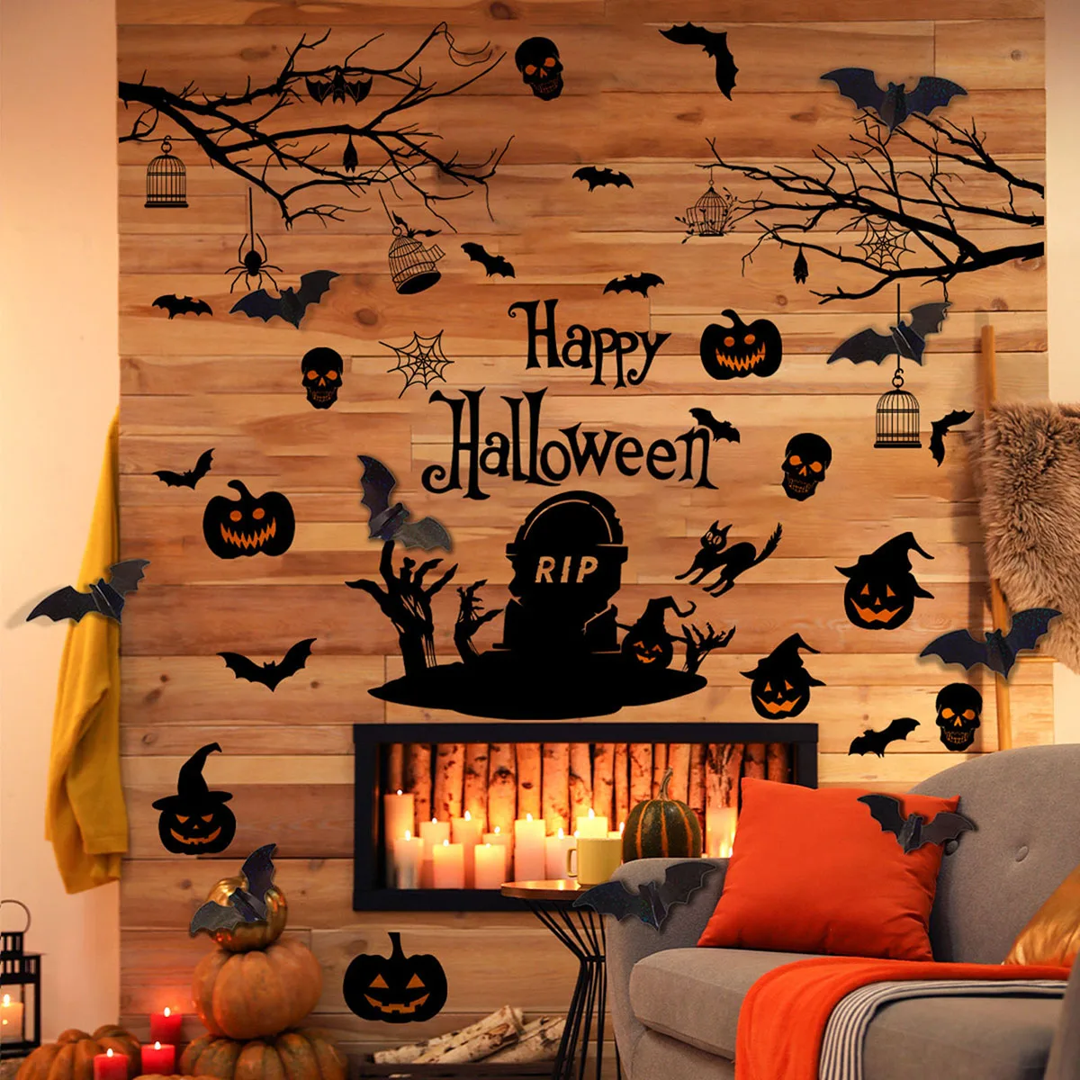 9* Bat Wall Decors+2 Sheet of Halloween Spooky Wall Stickers