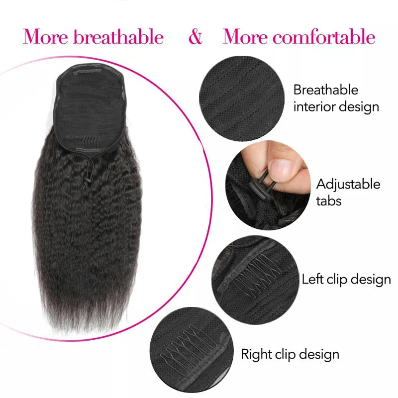 Elevate your hairstyle instantly with the Kinky Straight Ponytail, crafted from 100% real human hair for a natural look and soft, tangle-free texture. The wrap-around drawstring design makes it easy to attach and secure, giving you a flawless ponytail in seconds. Perfect for everyday wear or special occasions, this extension adds volume, length, and style effortlessly.