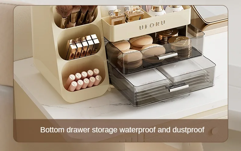 Refined Craftsmanship: This cosmetic box boasts rounded edges for safety, non-slip feet for stability, and elegant metallic drawer handles. Each detail underscores its commitment to quality and user experience.