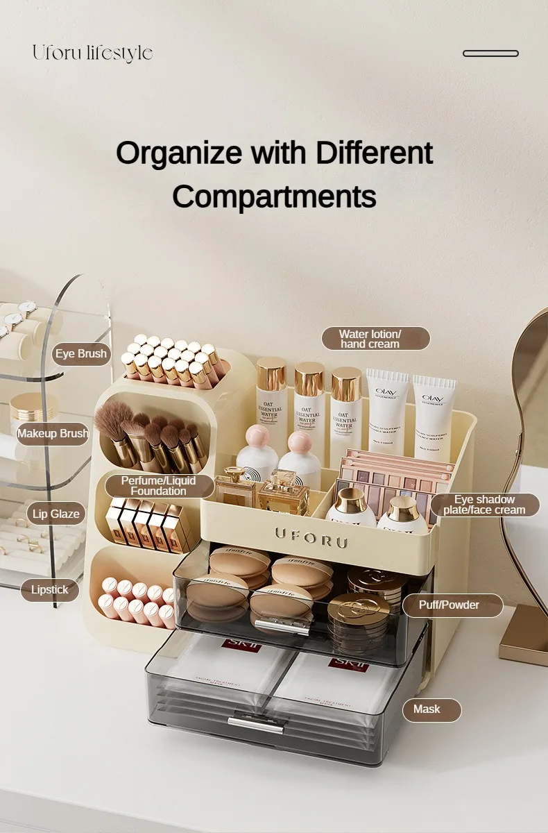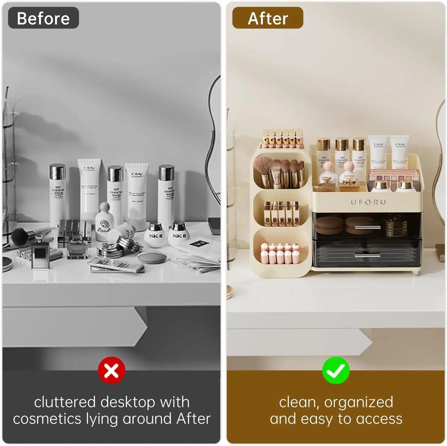 Spacious Design: This makeup organizer for vanity features a thoughtfully designed compartmentalized structure, allowing you to neatly store and display all your beauty essentials