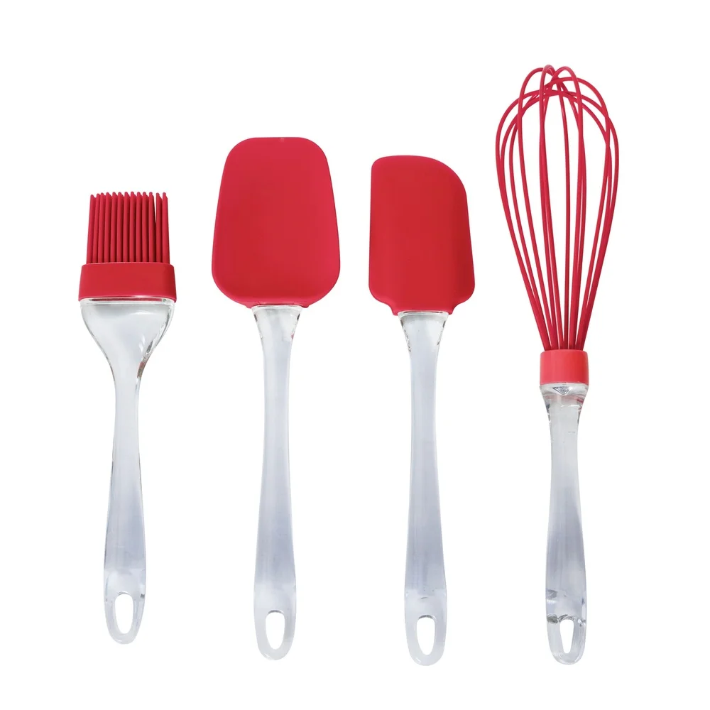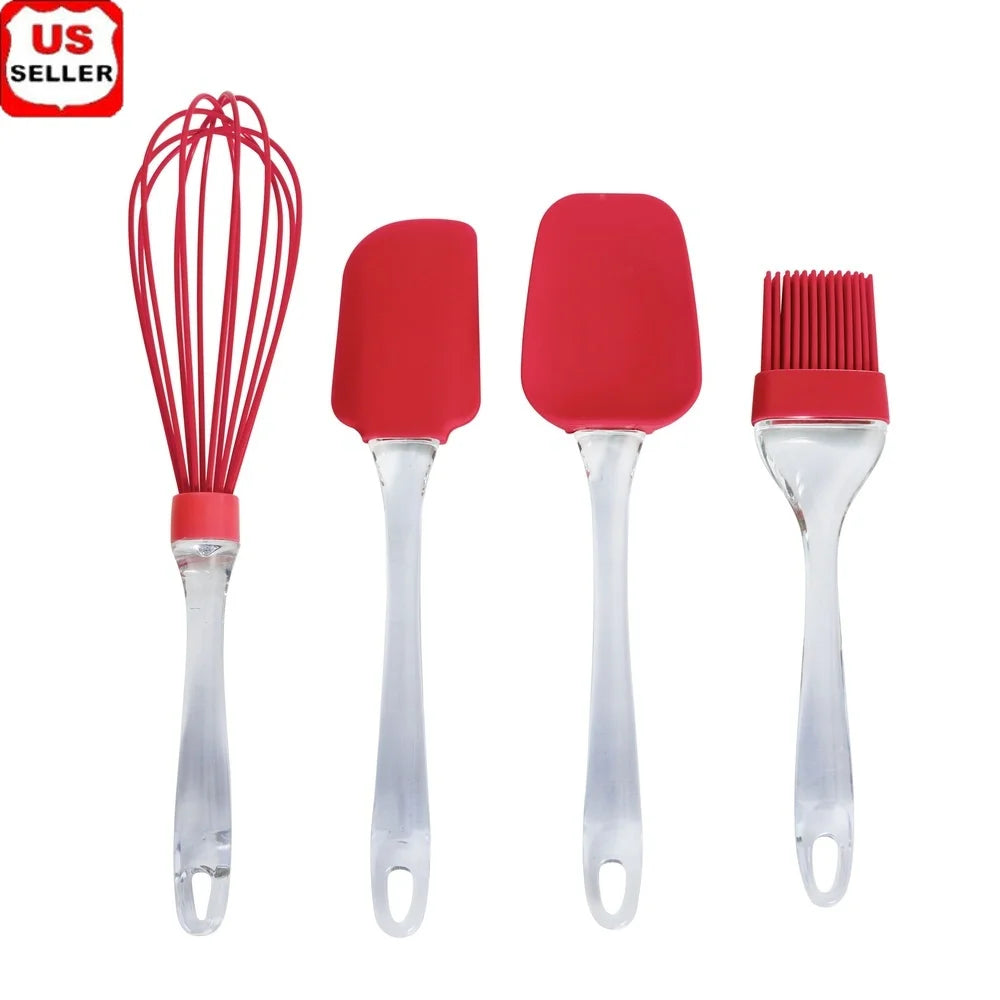 Silicone Kitchen Utensils Set 4 Piece Whisk Spatula Spoon Basting Brush Heat Resistant Easy Clean Dishwasher Safe Cooking Tool